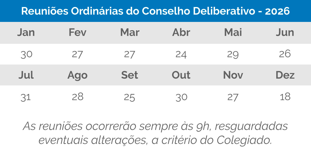 O Conselho Deliberativo, tendo em vista o término, em 9 de março de 2021, do mandato do conselheiro deliberativo Sérgio Almeida de Souza Lima e do conselheiro fiscal Rodrigo Monteiro, e com base no disposto no art. 8º do Regulamento de Eleições, decidiu constituir Comissão Eleitoral, composta pelos empregados a seguir identificados, para se incumbir do processo eleitoral destinado ao preenchimento das vagas indicadas e dos respectivos suplentes nos Conselhos Deliberativo e Fiscal, do grupo dos participantes ativos dos planos de benefícios administrados, conforme previsto na alínea “a” do inciso II dos arts. 20 e 42 do Estatuto, cabendo-lhe a preparação e a realização das eleições, bem como o julgamento de pedidos de impugnação: