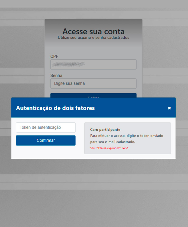 - Para entrar na nova Área do Participante, será necessário concluir a verificação em duas etapas. Você receberá um código por e-mail e por SMS.